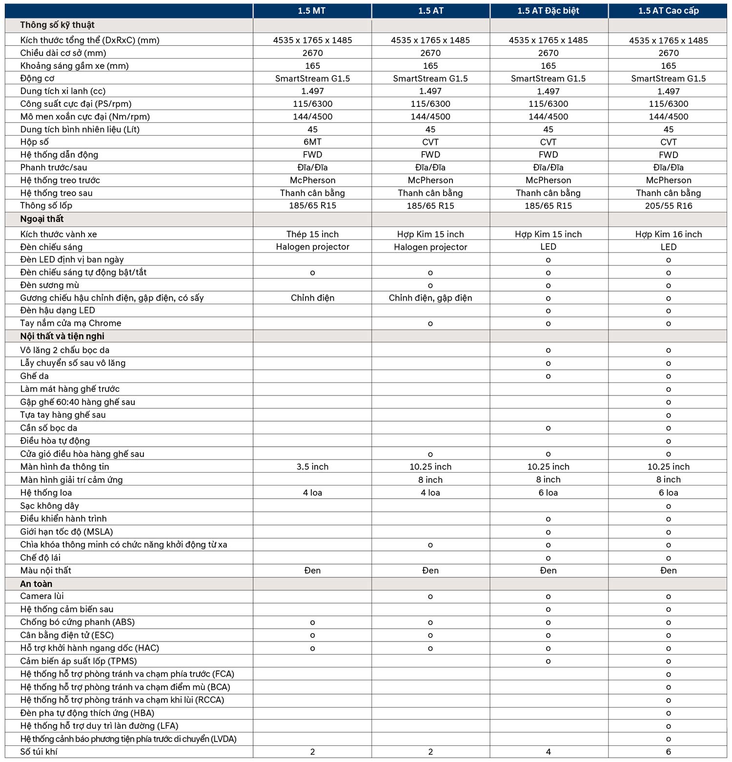 Hyundai Accent được trang bị động cơ Smartstream 1.5L cung cấp công suất cực đại lên tới 115/6,300 (PS/rpm) và mô-men xoắn cực đại 144/4,500 (Nm/rpm) giúp xe tăng tốc tốt, mang lại sự tự tin khi di chuyển tích hợp các chế độ lái cho phép bạn chọn phong cách lái xe phù hợp nhất cho mình.